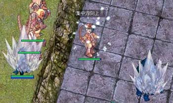 01フィールドは、ステムワ:ファイター:ドライアドが2:2:1くらいで存在するマップです。 ステムワとドライアドが射程があるので、SPはテレポに回してテレポ狩りしていました。 ステムワは白ハーブを高確率で落とすのはいいんですが、経験点の割りにHPが高めで、 どうやらステムワが時給を下げている原因っぽいです。でも、一応1時間で白ハーブ20個ほど溜まりました。
