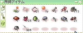 1時間狩ってみましたが、収集品はこれだけ溜まりました。 コウモリの牙、赤コウモリの翼、獣の皮は適度に捨ててます。