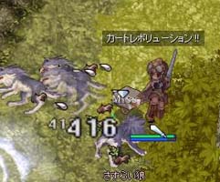 STR100の+6TBdサーベルで、ギルメンのVIT鳥を殴る図。