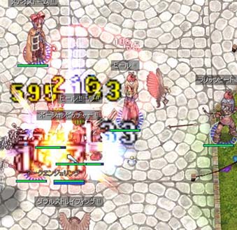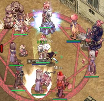で、最近阿修羅ゲーと化しているGvGで、これだけの回復量が必要かどうかが疑問になってくるわけですが、 クリエイターが来ていると言うことは、同時にロードナイトとチャンピオンも来ているわけです。 ロードナイトのHPの高さとチャンピオンの阿修羅連打力を考慮に入れなければなりません。 ロードナイトのHPを20k、チャンピオンの阿修羅ダメージ15k程度と仮定。狂畜気のキャスティング2秒がDEX75で1秒、 SP回復にイグ実を使うとすると、1秒で15kダメージです。 対するクリエイター側は、HP15kを回復させるのに約4回分のPPが必要です。1回でディレイ0.5秒とすると約2秒。 これらを考慮すれば、決して回復量が多すぎると言うことは無いと思います。 流石にこれは、ロードナイト側も回復の仕様を余儀なくされますが、 もしもチャンピオン側がローヤルや青ぽでSP回復していたら、十分PPだけで回復させきることができますね。 しかも範囲で。