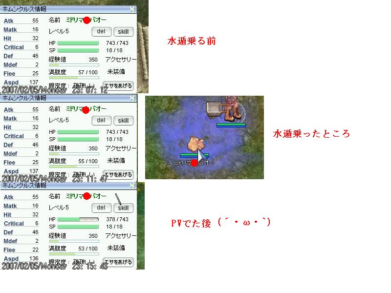 要は、攻撃速度はホムの攻撃グラフィック速度に依存してしまっているようです。 それにより、元々攻撃速度が速い鳥やバニル、特に攻撃グラフィックの長い亜種鳥や亜種バニルに、攻撃速度減少が顕著なようです。 (もちろん、ホムの種類に関わらず、高Lvホム全般に致命的なほど攻撃速度が下がっています)