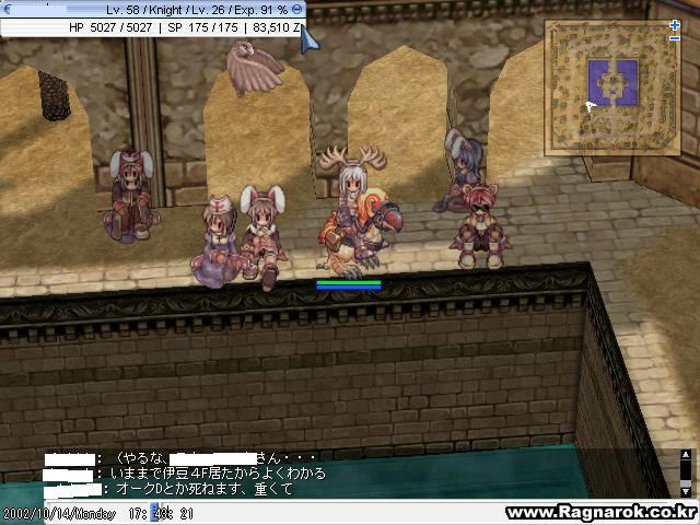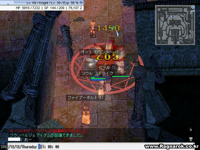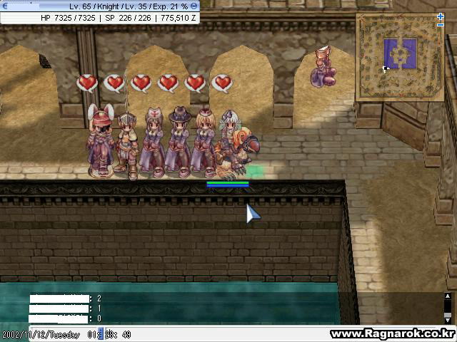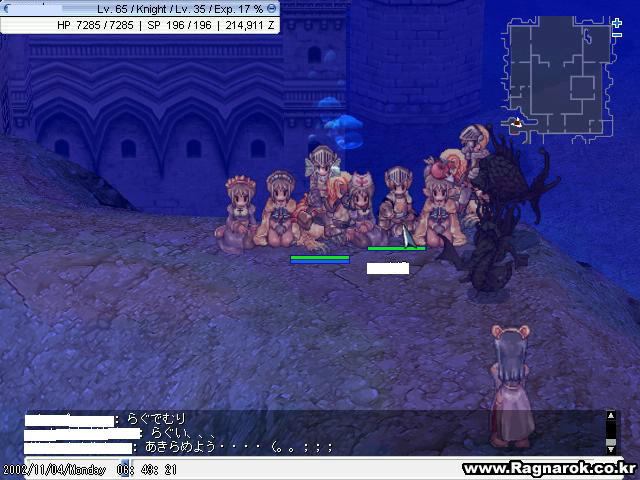 最初にプレイしていたLOKI鯖の スフィンクスダンジョンにて ギルドの仲間と集合場所でまったり 仲間たちと一緒に海底神殿観光 ティータイム(ぉ みんなではぁと〜 アルデバラン観光旅行 正式サービス開始とともに実装された グラストヘイム古城ダンジョンにて みんなで炭鉱に狩に グラストヘイムに遊びに LOKI鯖の重さに耐えかねて新鯖 Lydia鯖に引っ越して1からスタート LOKIの時の仲間も一緒 ポリン島と遊びにきたらゴーストリング に遭遇、、まだ歯がたたなかった(汗